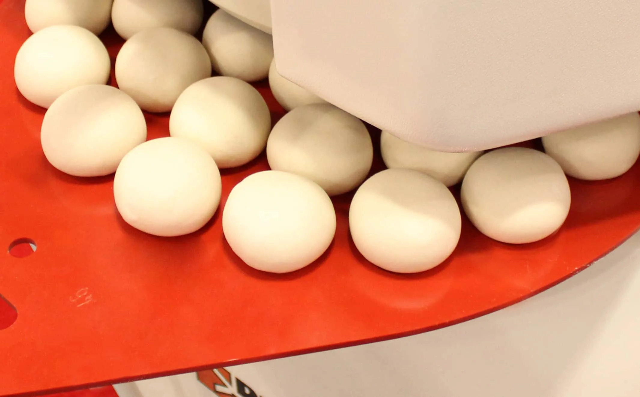 Simply insert your rounding plate with dough into the machine. Then, press both dual safety buttons on the control panel to lower the knife head onto the rounding plate. Once the first indicator light at the top of the machine has turned yellow, cut your dough into the number of desired portions by pulling the cutting handle. You will then see the second indicator light turn green. Lastly, pull the rounding handle to form perfectly round dough balls. This entire process takes place in a matter of seconds, with less physical strain on your production staff.