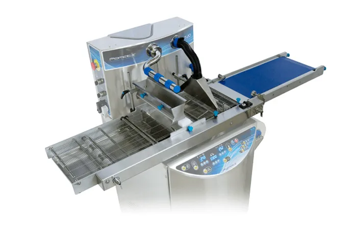Enrobing belt compatiable with a wide variety of accessories to be used in conjunction T20 and T35 tempering machines.