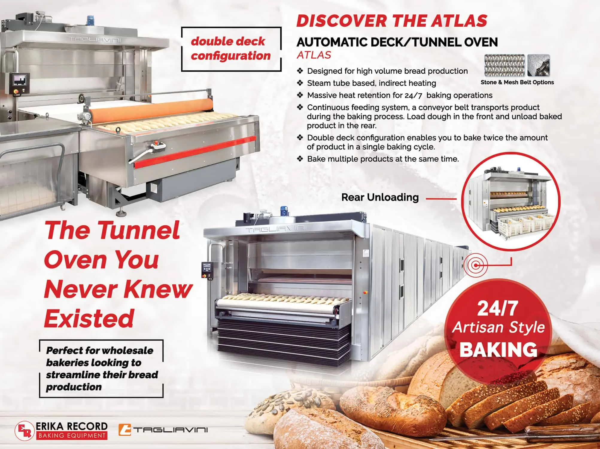 The Tagliavini Atlas, automatic double-deck tunnel oven includes the following standard features: